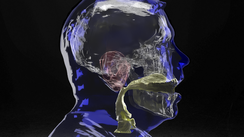 The team's winning image is a compilation of MRI scans of Dr. Meyer's ear, vocal tract (the airspace in the throat - from the vocal folds to lips), skull, and the external surface of his head.